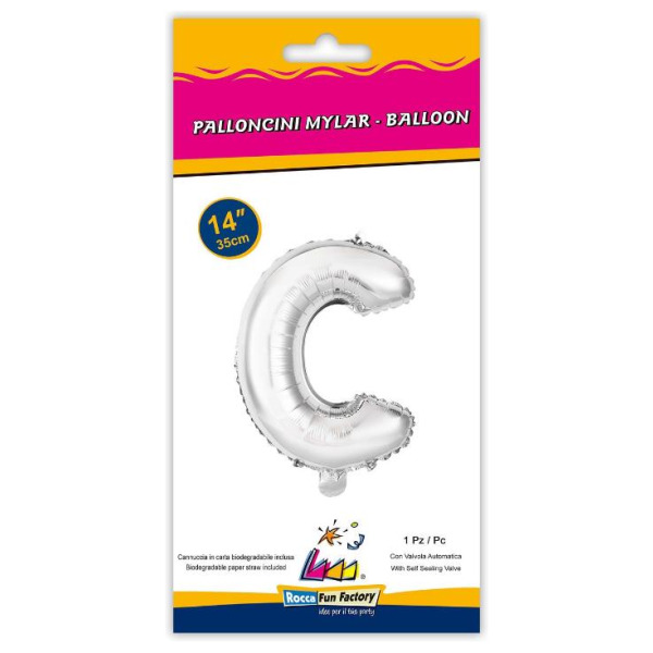 Palloncino mylar lettera c argento mini 14''-35 cm con valvola