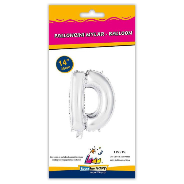 Palloncino mylar lettera d argento mini 14''-35 cm con valvola