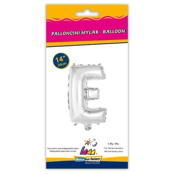 Palloncino mylar lettera e argento mini 14''-35 cm con valvola