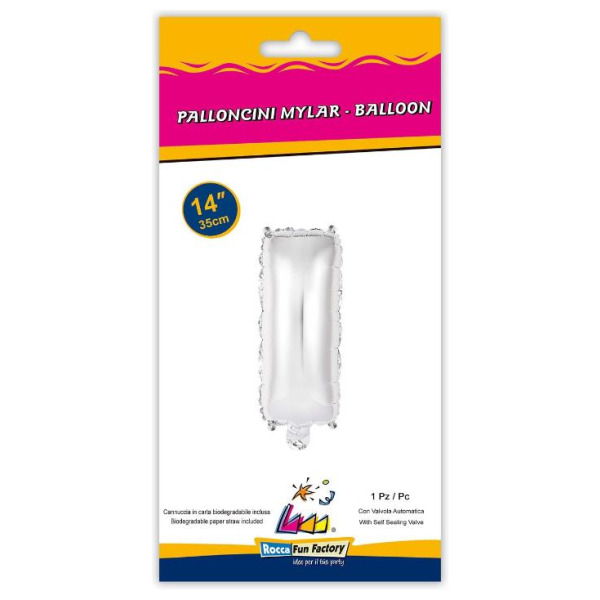 Palloncino mylar lettera i argento mini 14''-35 cm con valvola