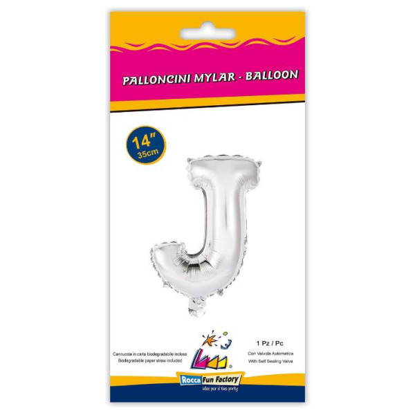 Palloncino mylar lettera j argento mini 14''-35 cm con valvola