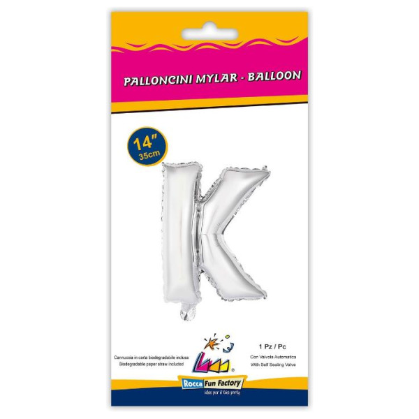 Palloncino mylar lettera k argento mini 14''-35 cm con valvola