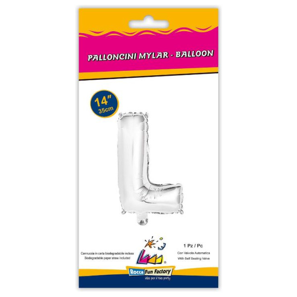 Palloncino mylar lettera l argento mini 14''-35 cm con valvola