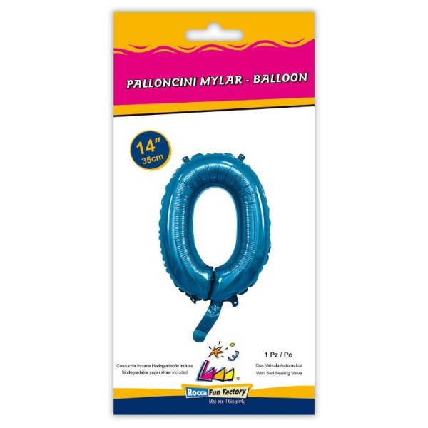 Pallone mylar numero 0 blu mini 14''-35cm con valvola