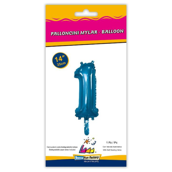 Pallone mylar numero 1 blu mini 14''-35cm con valvola