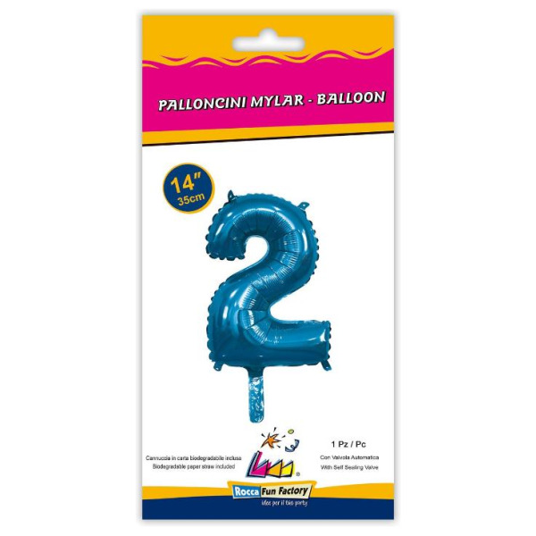 Pallone mylar numero 2 blu mini 14''-35cm con valvola