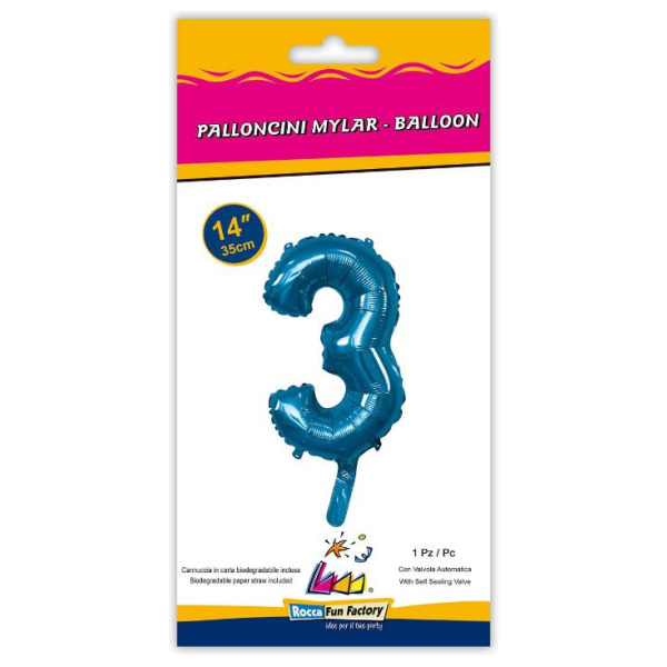 Pallone mylar numero 3 blu mini 14''-35cm con valvola