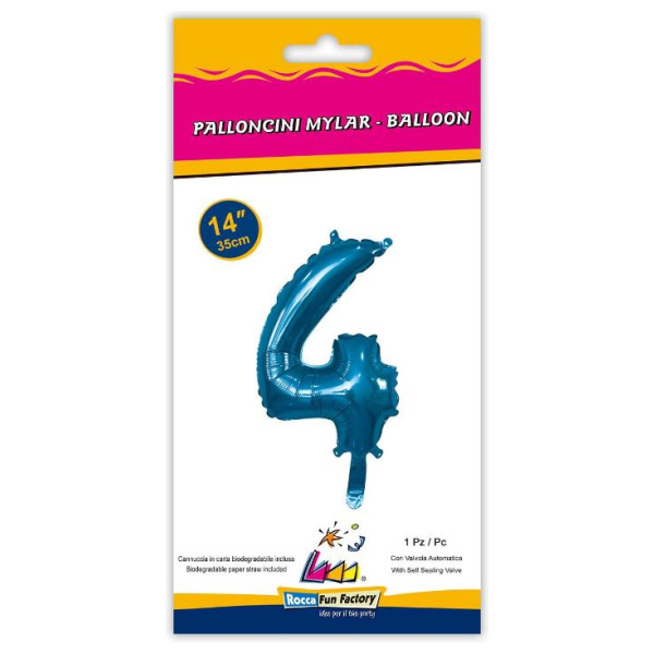 Pallone mylar numero 4 blu mini 14''-35cm con valvola