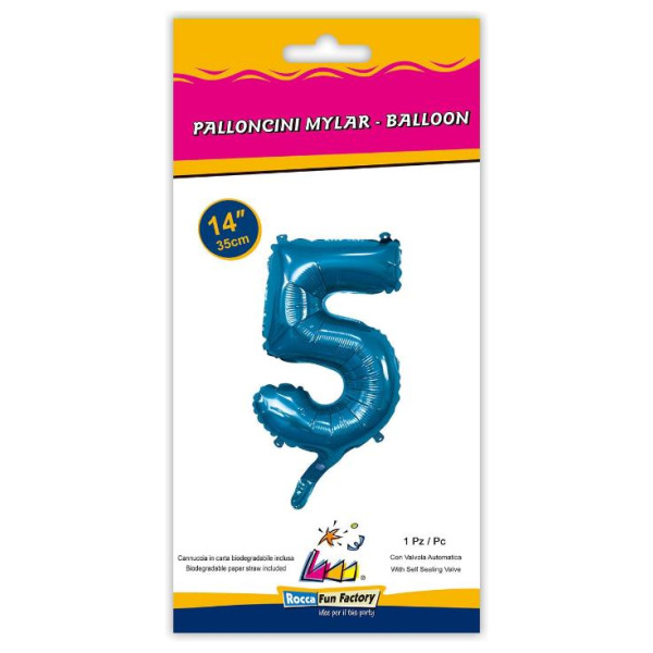 Pallone mylar numero 5 blu mini 14''-35cm con valvola