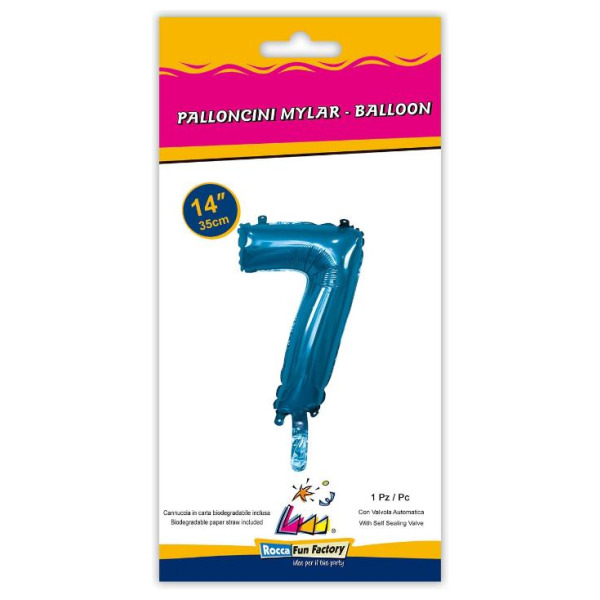 Pallone mylar numero 7 blu mini 14''-35cm con valvola