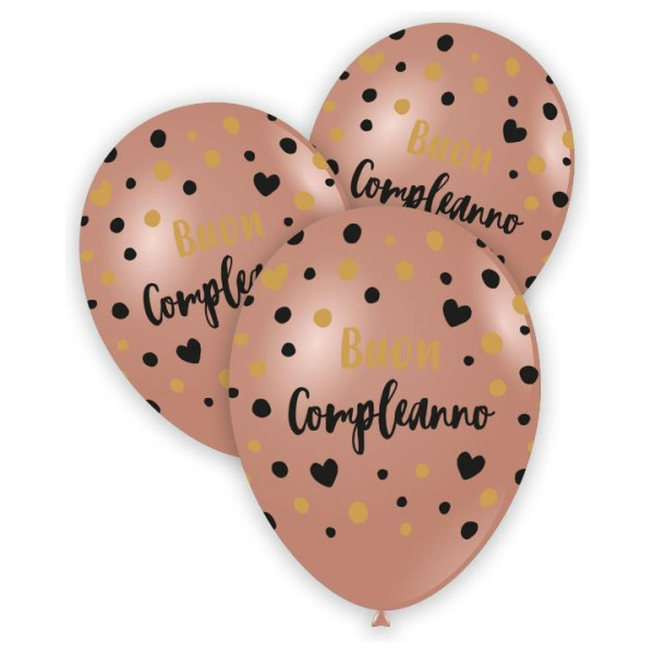 Pallone globo buon compleanno stampa oro/nero su rosa gold 81