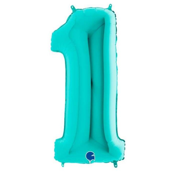 Pallone mylar numero 1 tiffany scuro mega 40'' - 101 cm