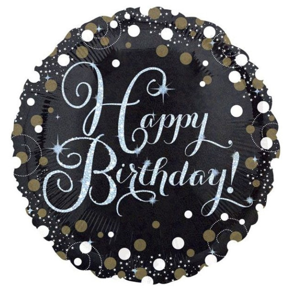 Palloncino maylar buon compleanno geoide nero tondo 18''