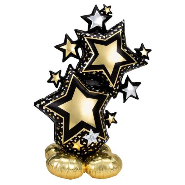 Pallone mylar stelle nero e oro cluster airloonz 34x59