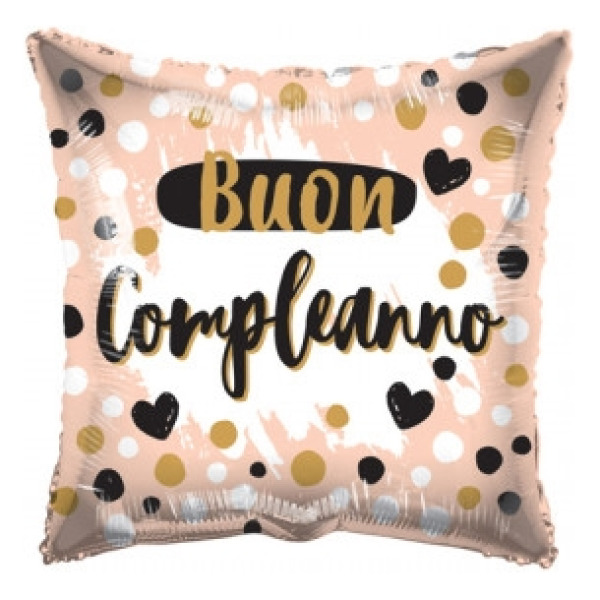 Buon compleanno rosa 18" quadrato con pois e cuori