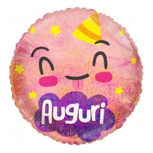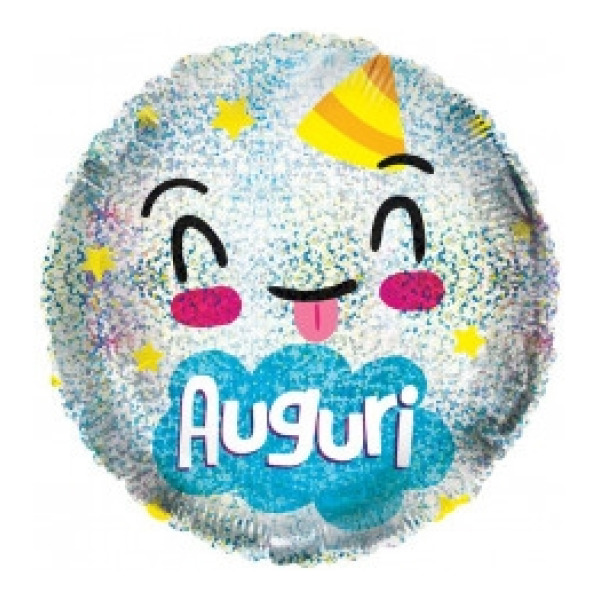 Pallone mylar tondo oleografico azzurro auguri 18''