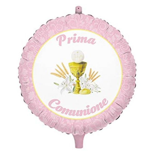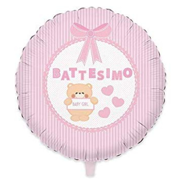 Pallone mylar tondo cm.45 battesimo teddy rosa