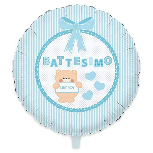 Pallone mylar tondo cm45 battesimo teddy celeste