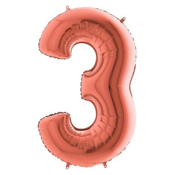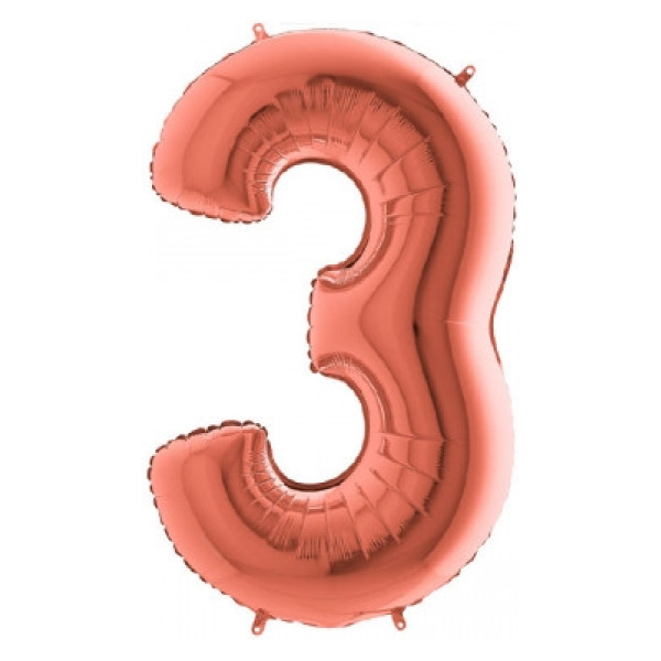 Pallone numero 3 colore rosa gold misura h.100 cm