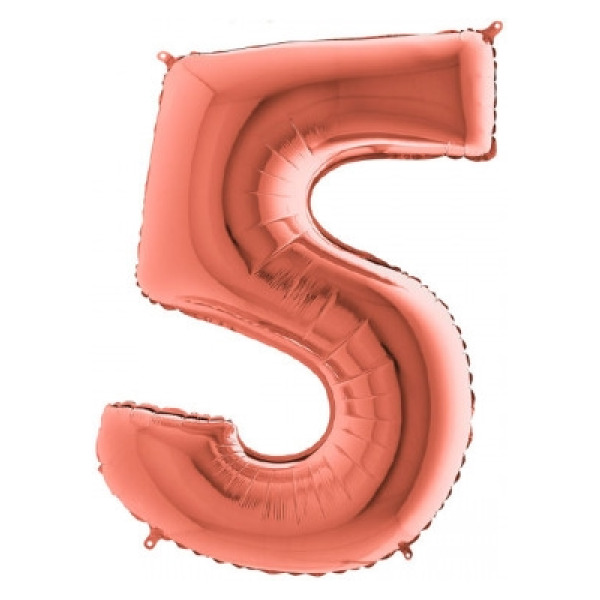 Pallone super shape numero 5 rosa gold holografico 101 cm