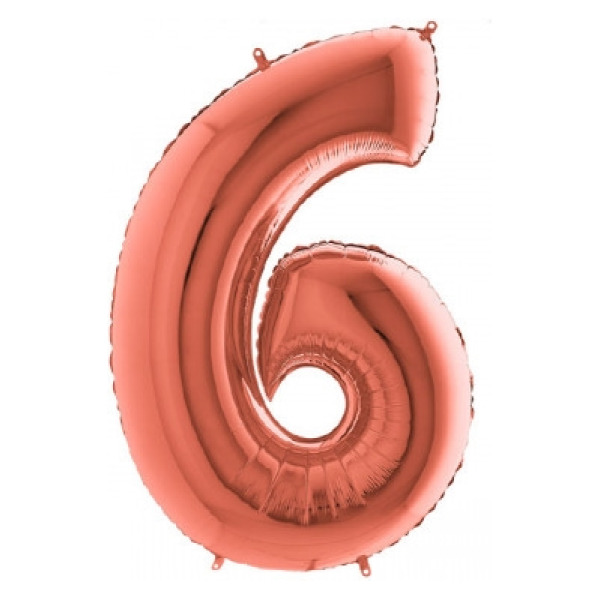 Pallone super shape numero 6 rosa gold holografico 101 cm
