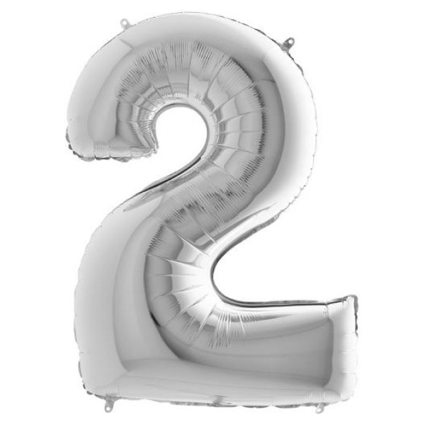 Pallone numero 2 colore silver misura h.100 cm