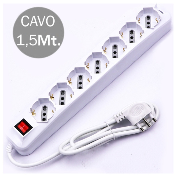 V-tac multipresa con cavo 1,5mt 7 prese 10/16a 2p+t bipasso+ shuko interruttore luminoso spina 16a 2p+t colore bianco - sku 8714