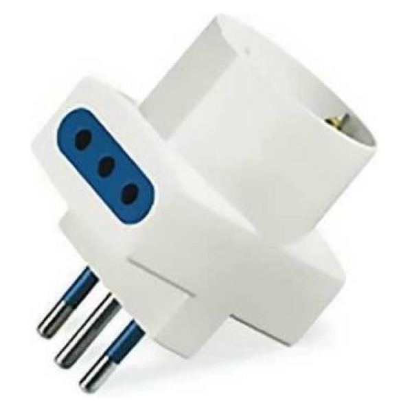 Adattatore spina 10a 2p+t fort pr. 16a schuko +3fori bianchi