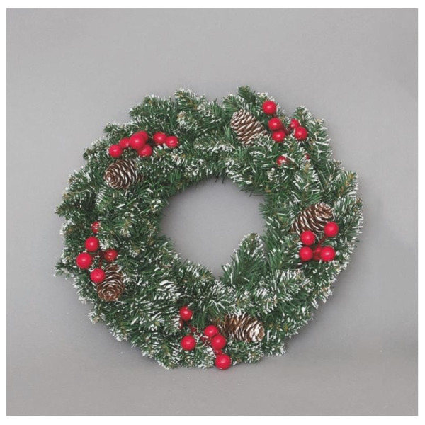 Corona Polistitolo Rosso e Verde con Decorazione Fiocco Rosso cm.38