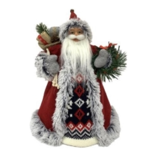 Puntale tessuto Babbo Natale con regali grigio rosso cmh30