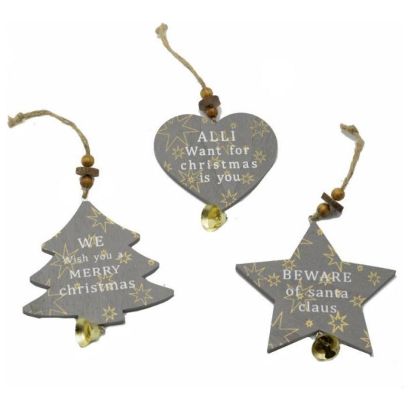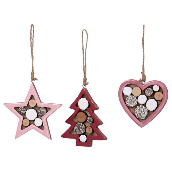 Decorazione albero legno rivestito in gomma 3 assortiti cm 10,2x10x1