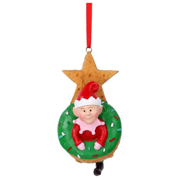 Elfo resina con ciambella verde cm 6,5x5h 10,5/18