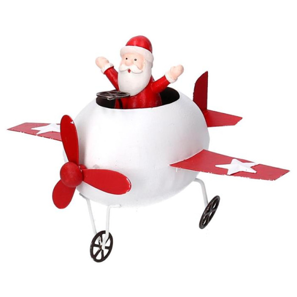 Babbo natale metallo su aeroplano bianco cm 18x14h13,8