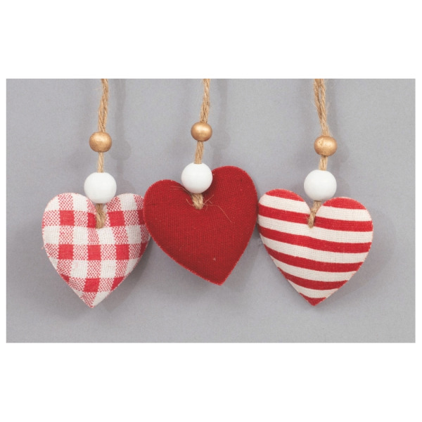 Pendente cuore poliestere cm.12 con corallino rosso/quadri/righe ass.