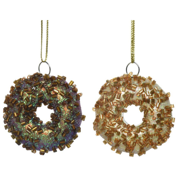 Donut/ciambella d.4cm h1.80m in plastica glitterata e con perline 2 col.assortiti