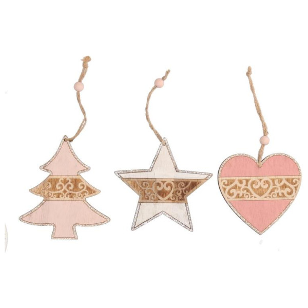 Decorazione stella cuore e albero con campanello mod.ass cm 12x12x1