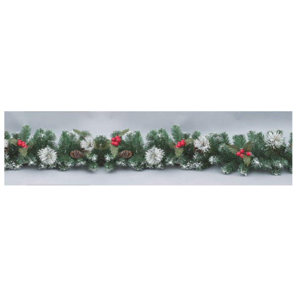 Trancio ramone mt.2 pvc verde decorato bacche e pigne nevato