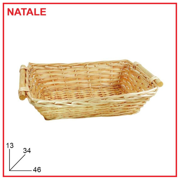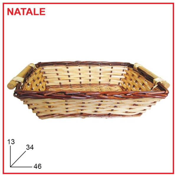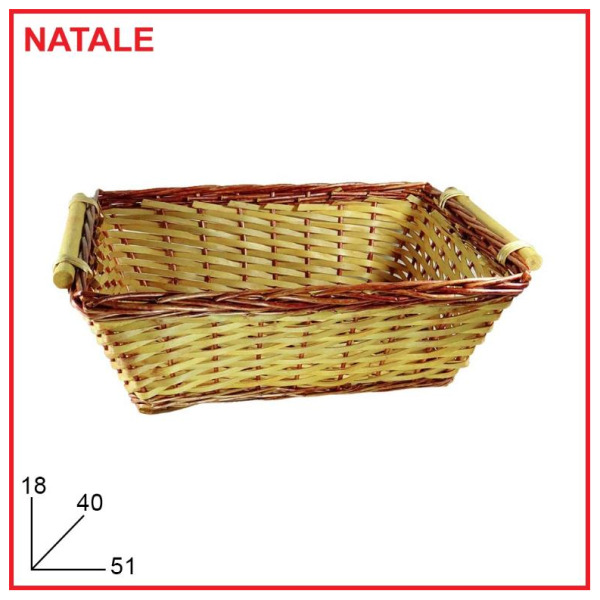 Cesto rettangolare vimini cm.56x43x13 manici legno 2 col. ass.