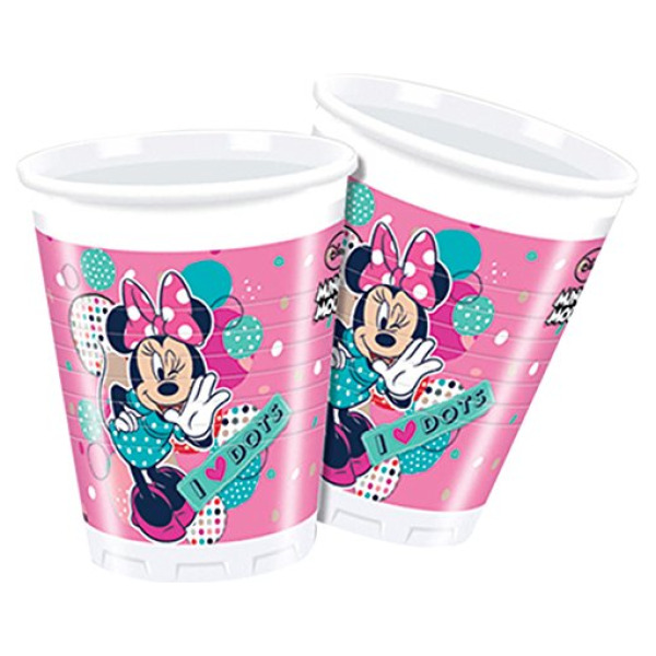 8 pz - bicchiere plastica 200 ml minnie dots