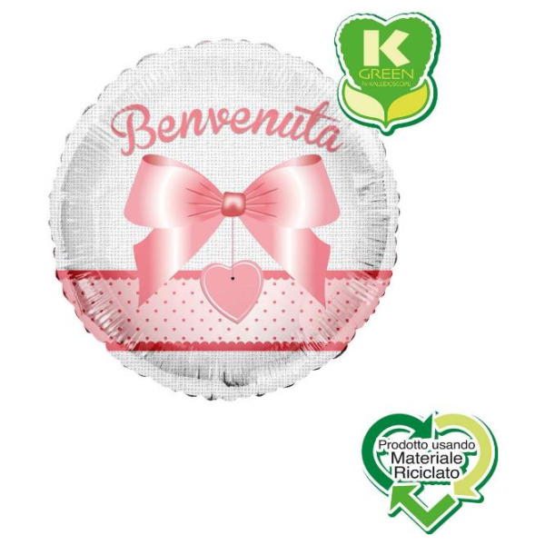 Pallone mylar benvenuto celeste tondo k-green 18''