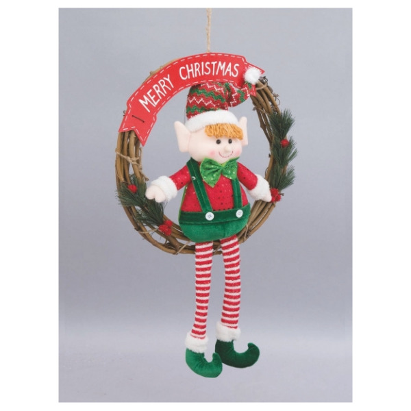 Corona diam.cm.36 vimini con elfo e scritta merry christams