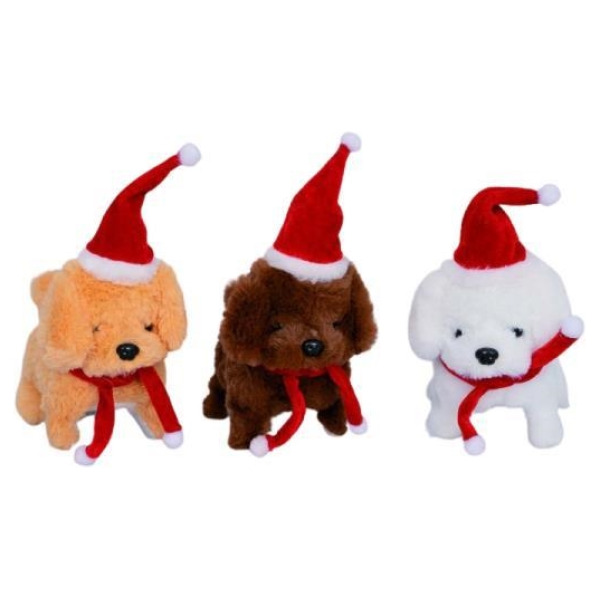 Cane natalizio che cammina e abbaia cm.19x23h pile 2aa 3 colori assortiti