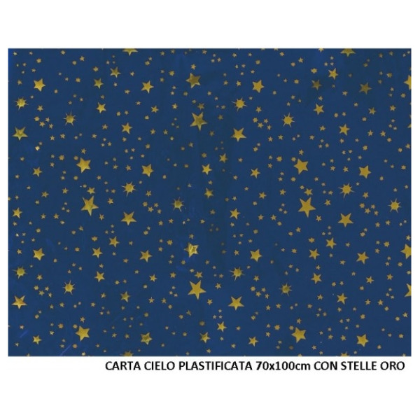 Carta cielo plastificata cm.70x100 c/ stelle oro in espositore