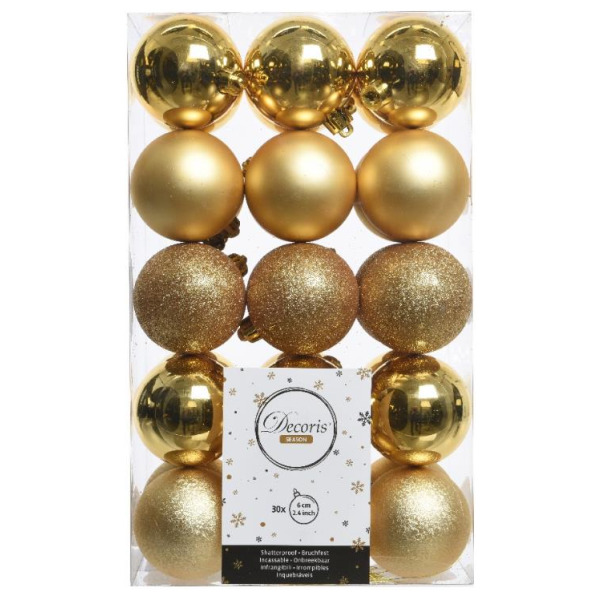 Box 30 palline 6cm mix infrangibile lucide opache glitterate oro chiaro