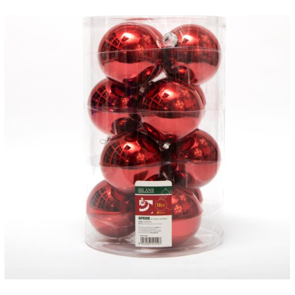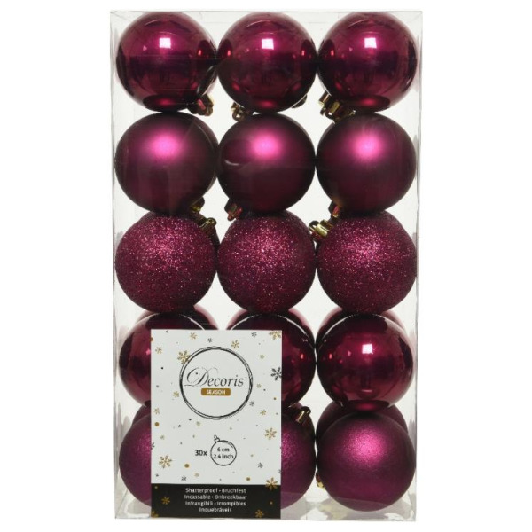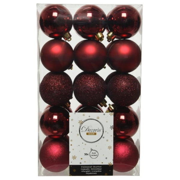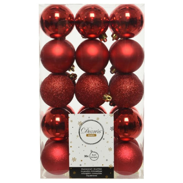 Box 30 palline 6cm mix infrangibile lucide opache glitterate rosse