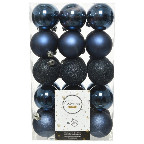 Box 30 palline 6cm mix infrangibile lucide opache glitterate blu notte