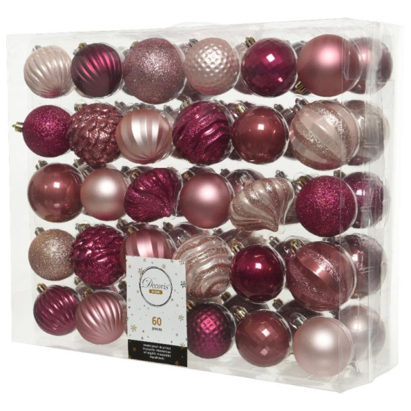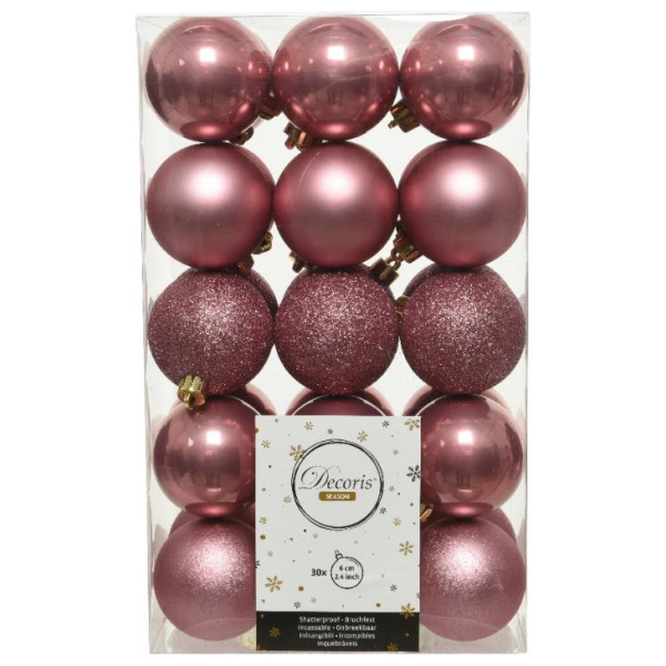 Box 30 palline 6cm mix infrangibile lucide opache glitterate rosa velluto