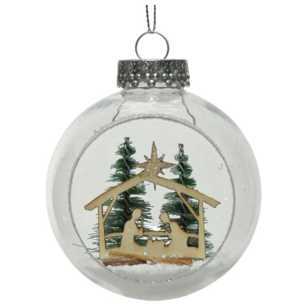 Pallina d.8cm infrangibile trasparente con nativita' presepale