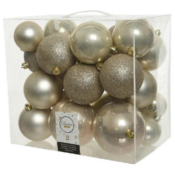 Box 30 palline 6cm mix infrangibile lucide opache glitterate col. magnolia