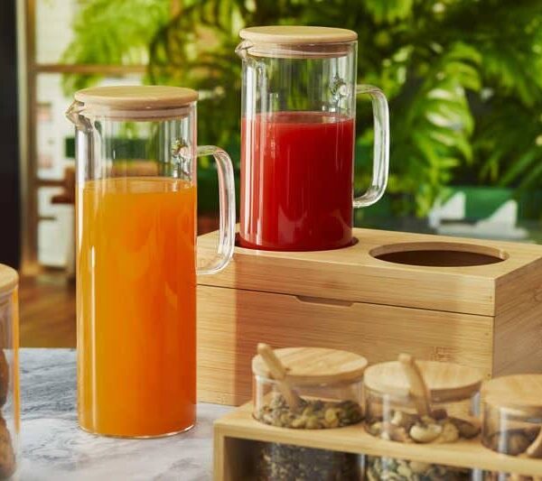 Caraffa in vetro con coperchio in bamboo 1,5 litri 1 pz
